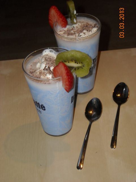 Proti večeru se je moj nekam dolgo skal po kuhinji pripravil je ta frape z malo smetane na vrhu, ki je bil zame večerja.