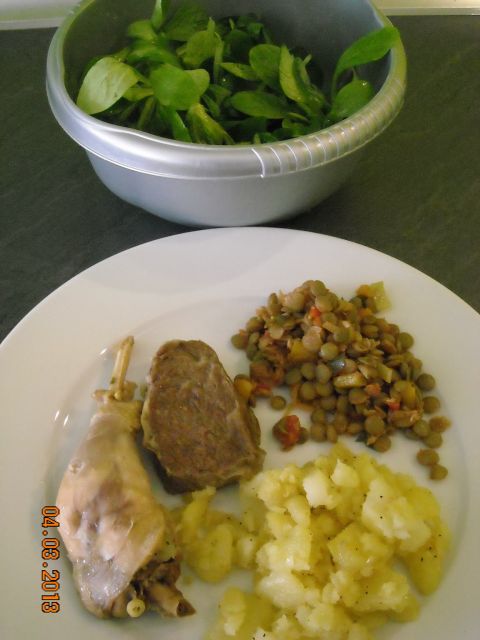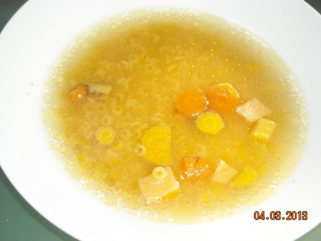 Danes: goveja juha in vse kar je bilo še užitnega v njej z testeninami, tenstan krompir, leča, domač motovilec.