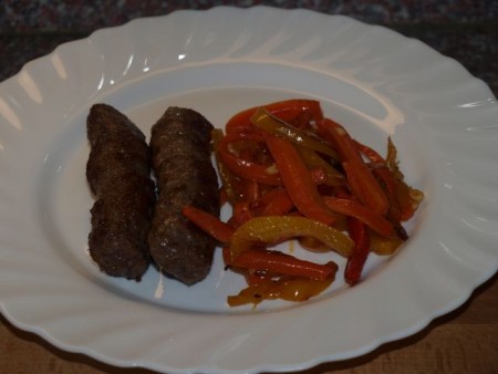 Zdrobova juhica; čevapčiči, dušen korenček/paprika, motovilec s krompirjem: