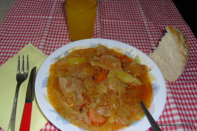 joj, same dobrote na slikah, pri nas pa danes brzinsko kosilo oz. večerja: polenta z ocvirki, zeljna solata s fižolom, jajci, ...![]()