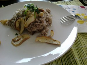 Danes rižota z rdečim vinom in pečenimi jurčki iz pečice, zelena solata z radičem,![]()