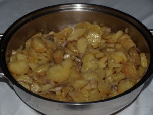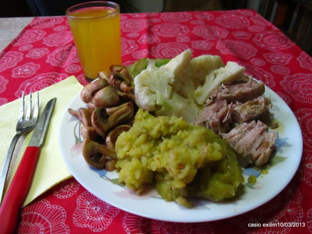 mož: gobova juha, nadevana telečja prsa, pečen krompir in mešana solata