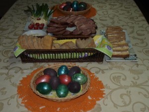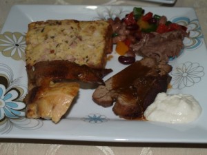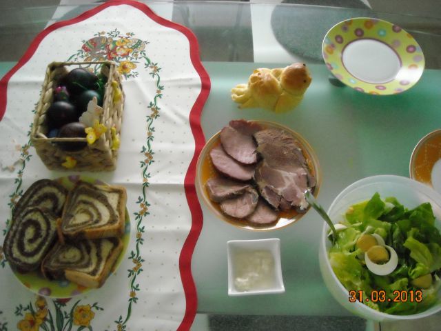 Včerajšnje pozno kosilo je bilo obenem praznovanje še enega drugega "svetnika". Poleg vseh tradicionalnih dobrot, ki se jih ni nihče dotaknil, sem naredila prato, svinjsko in telečjo pečenko, fižol z redkvijo, zeleno mešano, krompirjevo iz One