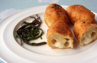 Ostalo mi je  nekaj malega vsestranskega testa (polnjeno z mozzarello in povaljano v dišavnicah) in za vzorec belušev in bljušča
