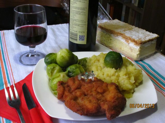 msegovGoveja juha z vlivanci, pražen krompir, piščančji in svinjski zrezek po pariško, berivka.