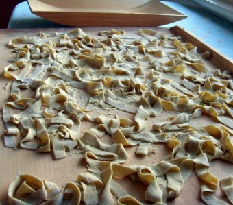 V drugem forumu omenjeni bučnični rezanci s pestom iz bučnih semen so končali kot del obeda v prijetnem poznopopoldanskem druženju, zato le slika polizdelka: (barva je bila v resnici bolj pastelno zelena) Posladek: buljenje v luno lp