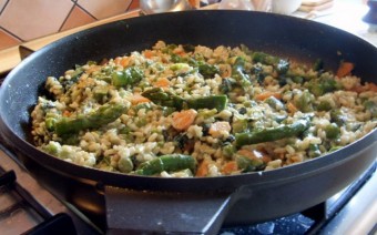 Danes: zelenjavni riž (zeleni šparglji, korenje, svež grah, mlada špinača, por)
