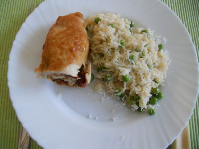 Danes: polnjena piščančja prsa, rizi bizi, solata