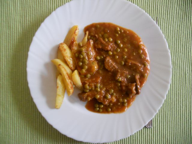 Danes: goveji zrezki v omaki, pečen krompir, paradižnik in paprika v solati, muffini s čokolado