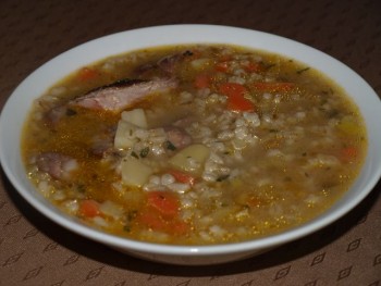 mali kuhardanes: ponovitev od včeraj - juha, pečenje z žara, tenstan krompir