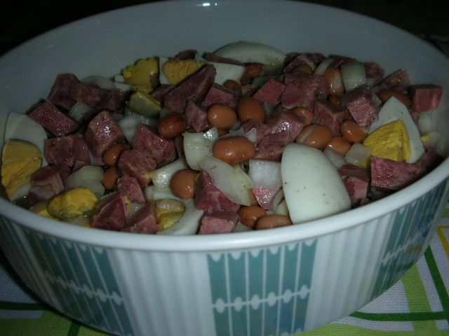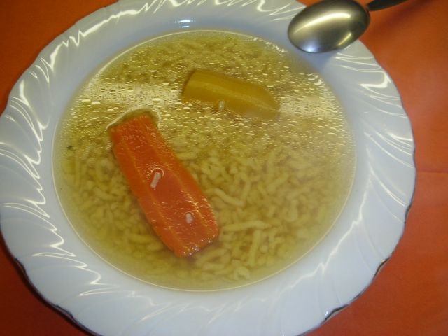Danes: goveja juha z ribano kašo ( doma narejeno ) in solata iz tlačenke in fižola
