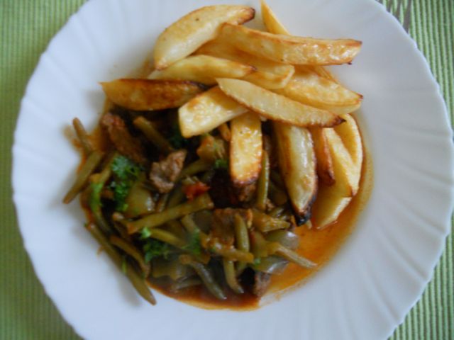 Danes: dušen stročji fižol z mesom, pečen krompir, solata