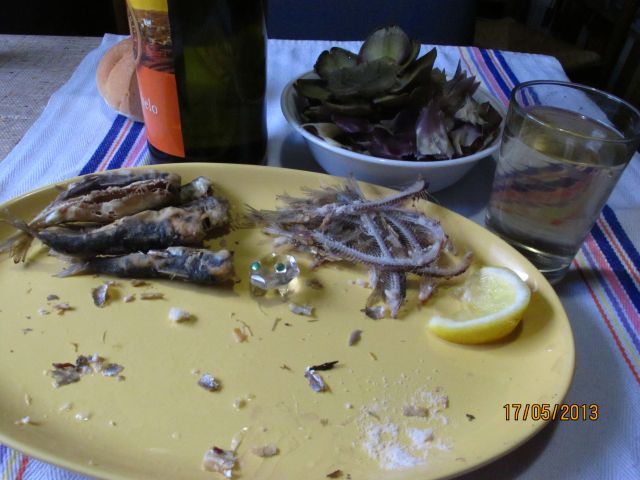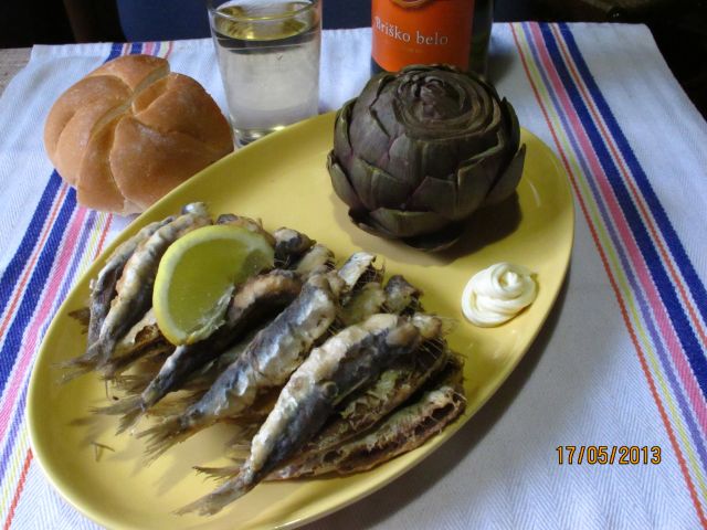 Pa, kaj zdej spet odkimavate? Saj niste mogli s slike pogruntat, da je majoneza namesto holandske omake ( kje se mi ljubi delat žlico omake? ). A, to vas ne moti. Pravite, kdo je videl tako kombinacijo, srdele in artičoka? Pa, evo, vi ste videli pri meni in sedaj bo to modni trend v Londonu ( najprej ).