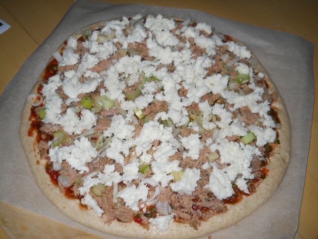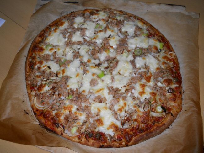 BalenkaPirina polnozrnata z veliko čebule,tuno in mocarelo in dih jemajočo domačo paradižnikovo omako![]()