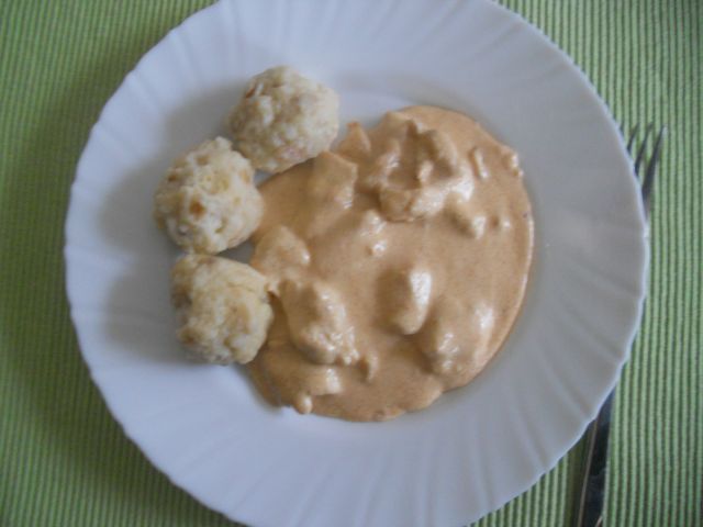 Danes: piščančji file v smetanovi omaki, kruhovi cmoki, solata