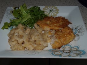 pečeni ribji file, solata = berivka/rukola.
