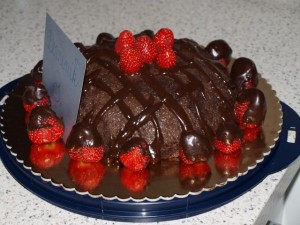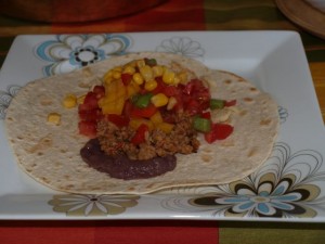 Pozno popoldan tortilje z zelenjavo in mesom; palačinke, jagode in na koncu tortica