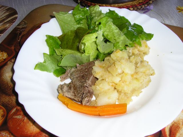 danes klasika: goveja juha z vlivanci, pražen krompir, govedina iz juhe, solata,![]()