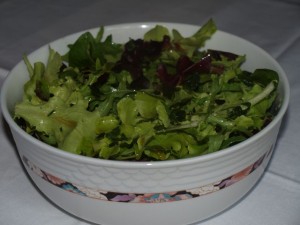 Danes: rižota s porom in gobicami, svinjska ribica, zelena solata (končno domača solata)
