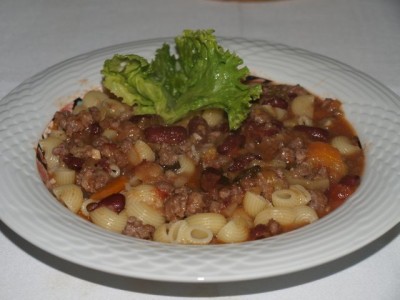 Danes pri nas: špageti v omaki iz popečenih koščkov govedine, mlade blitve z domačega vrta in parmezana, začinjeno s svežo mleto mešanico popra in rožmarina. Solata z domačega balkona, mešanica ene šempetrske in sorte Ovired.