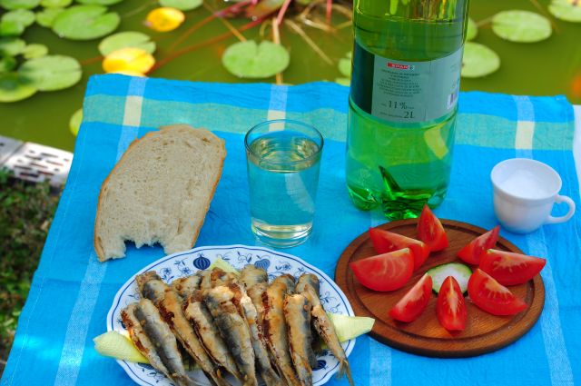 Pa da ne bo smetenja - danes reeeeeees hladna fižolova solata s papriko in koruzo, zalita z neopisljivo poplavo domačega bučnega olja in grobo mletim domačim suhim čilijem ;). Kuža briketke, kralj se je pa moral znajti po svoje (McDonalds). :)