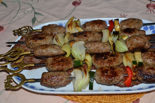 No, ražnjići v obliki čevapov po turško (vzhodnjaške začimbe in pisatcije, uh, kako je bilo dobro ...)