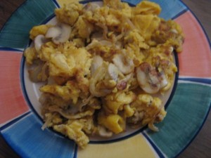 danes: šampinjoni z jajci, pečena paprika