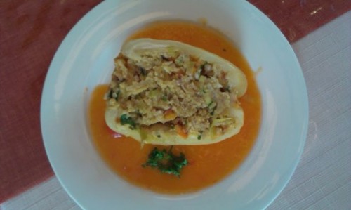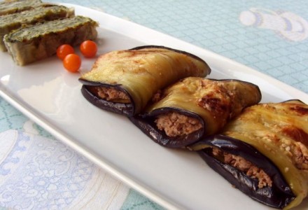 melancane z orehi , zavitek (blitva, sirarska skuta) in balkonski paradižnik ![]()