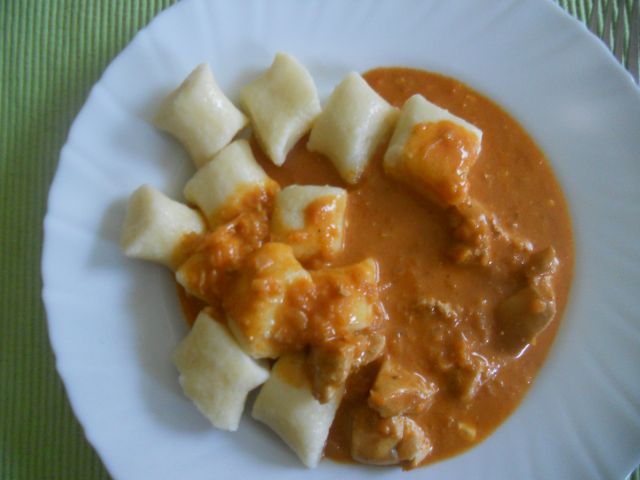 mzmDanes: piščančji golaž s smetano, njoki, stročji fižol v solati (iz domačega vrta), domači prijatelj