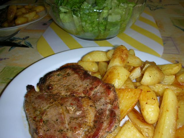Danes: krompir kifelčar in solata iz snahinega vrta, pečena vratovina od mesarja