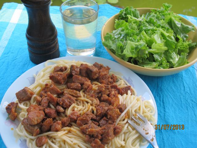 Že 2 dni sem na meseku in danes se mi je priskuto, a ko sem videl tole sliko...Me spominja na testenine z švedskimi kroglicami. Tu ste naredili goveji golaž?