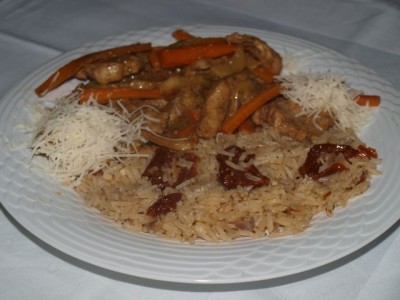 dušen riž s suhim paradižnikom;