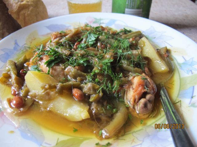Po kuhanju paradižnikove omake(v kletni inprovizirani kuhinji),špagetini picante con Habanero![]()