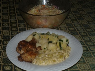 jedilnik se spet ponavlja sveže kuhana goveja juha s prepasiranim korenjem, kolerabo, zakuhanimi vlivanci, krompir na solato, govedina (fotoaparat ostal na Hrvaškem9
