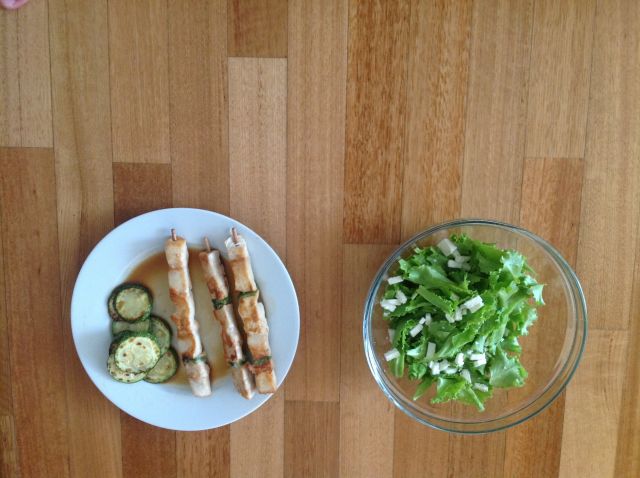 Ražnjiči z bučkami in solata (berivka) s feta sirom