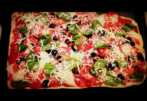 Danes: Široki sveži rezanci s temno tartufato in skleda zelene solate.