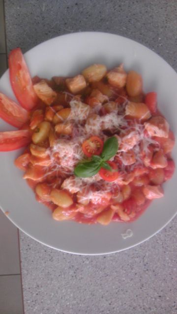 Njoki s piščancem in paradižnikom. Odlično kosila :D