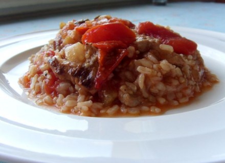 Danes: rižota (ščepec junčjega mesa, paprika, paradižnik, jajčevec....)