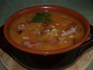 Ričet s suhimi rebri in klobaso; jabolčna pita