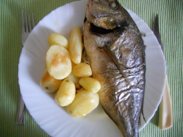 majaosDanes: pečena orada s krompirjem, mešana solata, sadni muffini