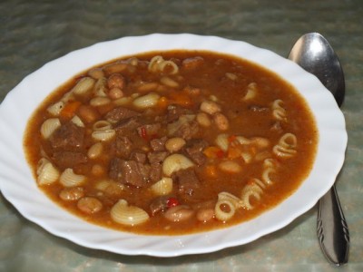 Ob kuhanju paradižnika, kuhala se čorbica (govedina na koščke, mlad fižol, zelenjava, makarončki)