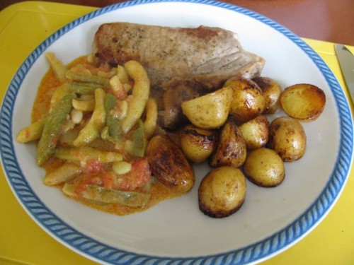 BalenkaPri nas pa danes losos z zelenjavo v foliji in en kup vseh mogočih solat (plenimo po maminem vrtu).