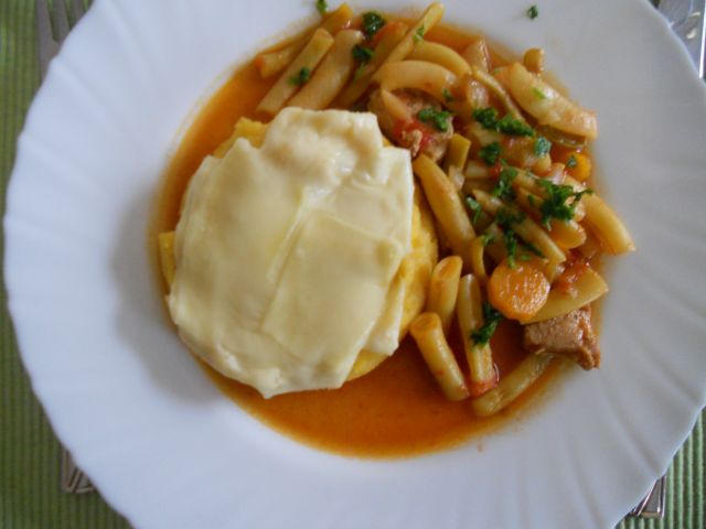 Danes: zapečena polenta, boranja, mešana solata, kremast sladoled