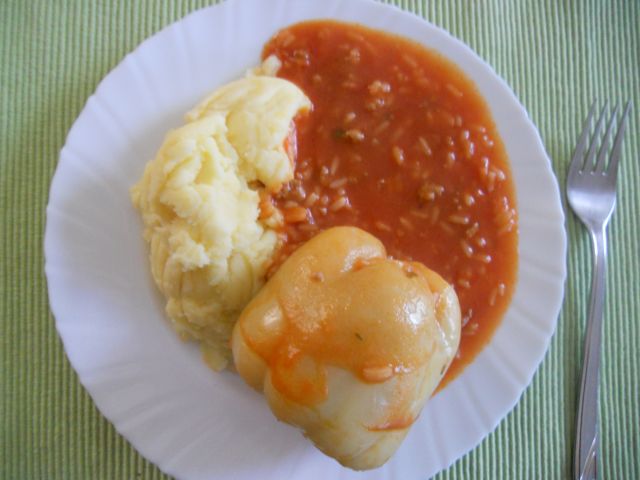 Mi smo imeli bolj skromno kosilo- goveja juha z rezanci, včerajšnja stefani pečenka, v oblicah