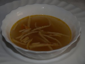 Gobova juha, domač kruh, pa najbrž cmoki.