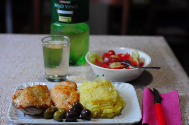 domača solatka iz vseh vetrov (BOŽANSKA. Problem!!! Tako obožujem solate, da sem pojedel vse kar so drugi pustili in nato ni bilo prostora da pojem tisti že ITAK MIŠKIN obrok. Not good for my weight gain, REALLY NOT GOOD