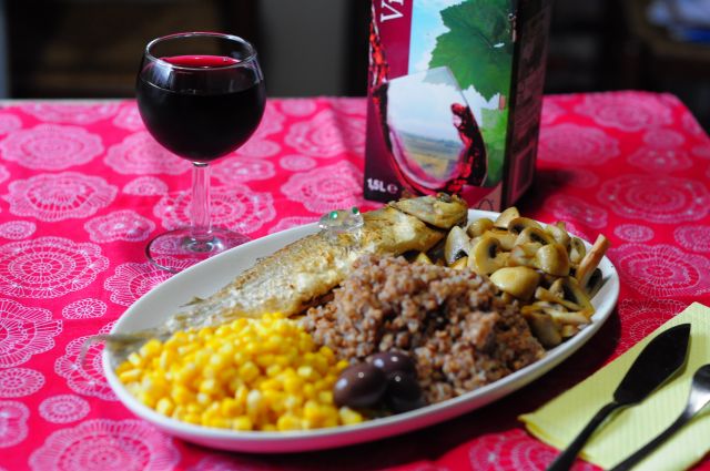 Večerja: pražene gobe, ki jih je brat danes zjutraj nabral.