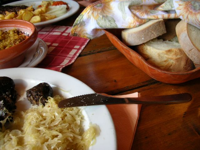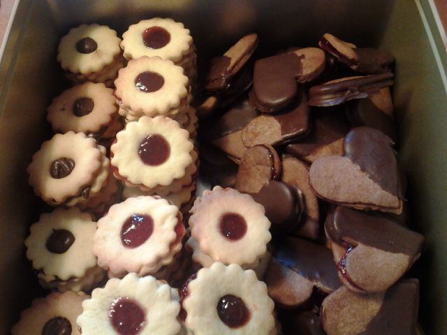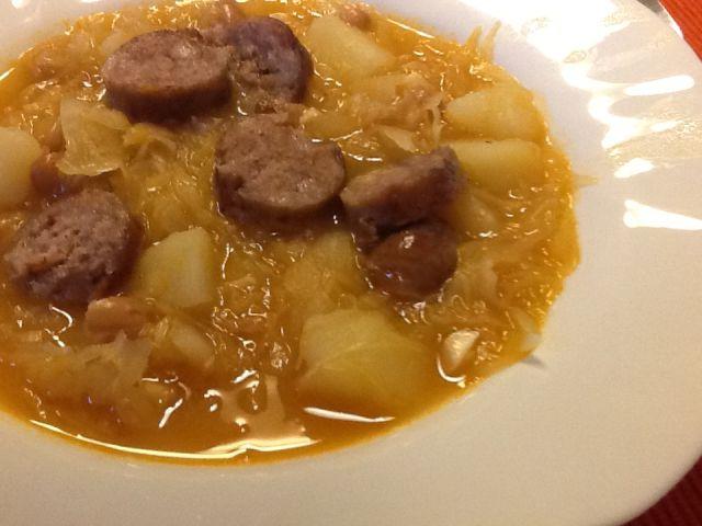 breskvaJota in klobasa, za naju s hčerko riba, zelenjava in solata - zelena in domača pesa in seveda vsi domači piškoti, ki sem jih delala čez vikend