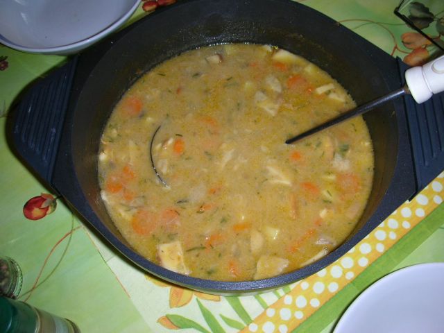 tulipankaMesno zelenjavna enolončnica z cmoki, praženec.