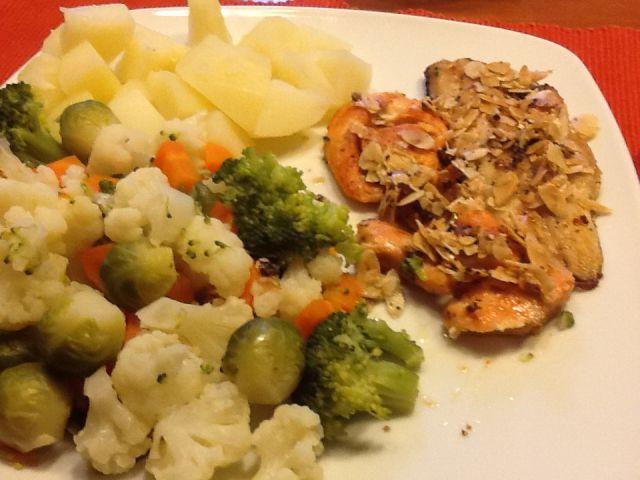 Danes svinjski zrezki v hrenovi omaki, skutno zdrobovi cmoki in skleda mešane solate